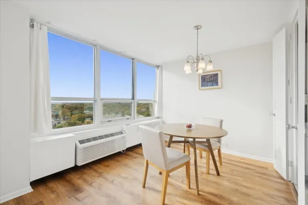 Hyde Park Renovated 14th Floor Corner Unit with Lake & City Views. Awe inspiring Sunrise views over Lake Michigan and Sunset views over the city await! The Newport is a mid century modernist gem of a building facing Lake Michigan where the historic neighborhoods of Kenwood and Hyde Park converge. This Sunlit and Spacious CORNER UNIT features 2 roomy bedrooms with Lake Views and 2 bathrooms, and was fully remodeled in 2023 and further updated in 2024-25. Recent updates include ALL NEW WINDOWS ($30k), 4 NEW AIR CONDITIONER units, and updated radiator valves making this unit incredibly energy efficient, Comfortable and Quiet! Other recent updates include NEW FLOORING throughout, an updated electrical panel, NEWER KITCHEN appliances and stone countertops. Unit also has abundant closet space!! The Newport is a full amenity building where your monthly assessment includes heat, a 24 hour doorman, security, on-site engineer for unit repairs, a library, Roof Deck with skyline & lake views, bike room & storage, FREE shuttle van to neighborhood shops, as well as a gorgeous lobby for meeting people. For only $16 monthly, you have access to an indoor pool, jacuzzi, sauna, and full weight & exercise facilities. For an additional monthly fee, there is valet garage parking available. Building is well maintained and has over $5M in reserves! Location is optimal - walk across the street to the lake and 18 miles of the renowned lakefront path. You are also a quick drive to the Loop, with easy access to both express buses and the train, and walking distance to Hyde Park's main shopping & dining areas. This is the updated unit at the Newport you've been holding out for!!!