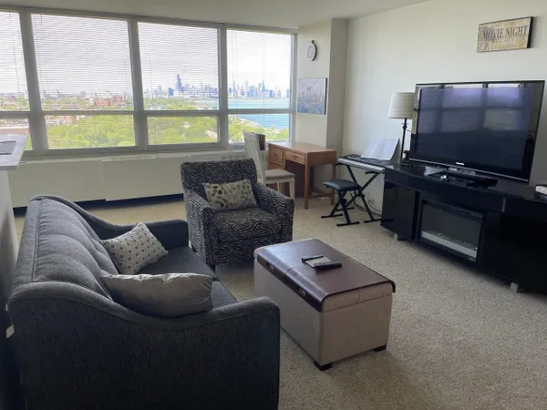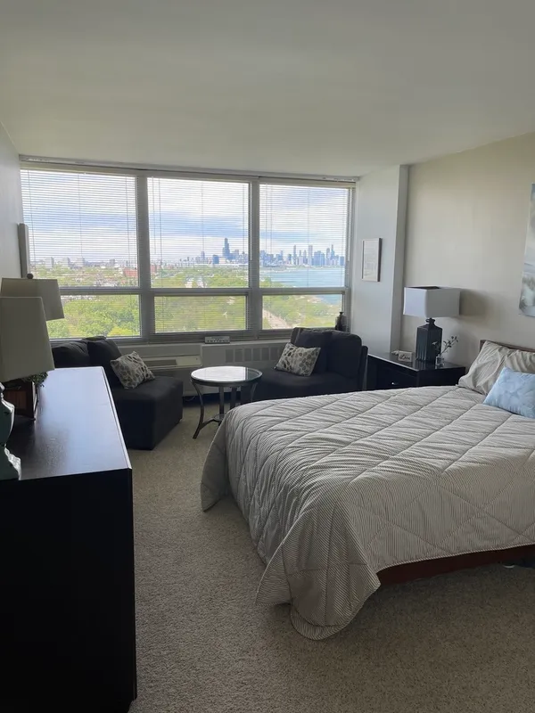 Incomparable northern views of the Chicago Skyline, Lake Michigan and western evening sunsets from this impressive generously proportioned one bedroom lakefront condo in Historic Hyde Park/Kenwood. Located on the 21st floor, this unit has a huge living room with space for a dining room or office. A spacious bedroom with ample closet space and an updated bathroom. The kitchen has been completely updated with custom cabinets, quartz countertop and stainless-steel appliances. The Newport provides 24 hour doorperson, security, onsite management/engineer, laundry facility, free shuttle van service to neighborhood grocery stores and transit stops, and a health club (exercise room, jacuzzi, sauna and swimming pool-$200 per year). INDOOR HEATED VALET PARKING IS INCLUDED in the price of the unit. You are in walking distance to shops, restaurants, entertainment and the University of Chicago.
