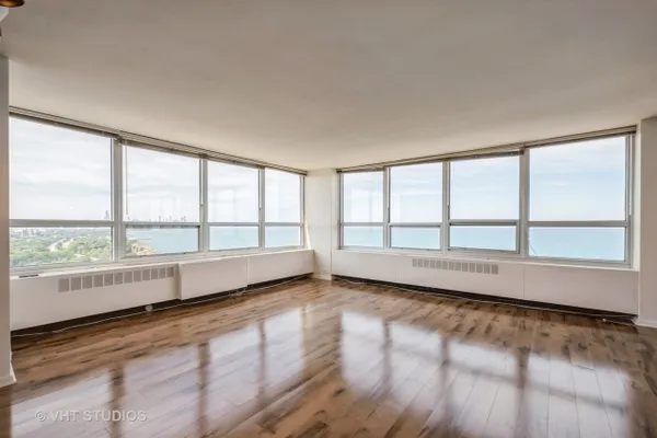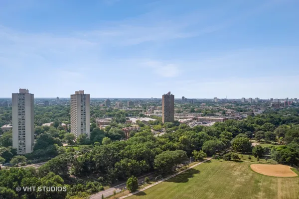 Rarely available High Floor tier 1 corner unit in the Newport Condominium building. This is a 3 bedroom Floor plan that has been converted to an extended 2 bedroom, to make a huge Living room. It can easily be converted back to the 3rd (12X12) bedroom. Enjoy the breathtaking north and east views of downtown, Navy Pier (fireworks) and Lake Michigan. Enjoy the Awesome sunrises and beautiful sunsets. You also have a Grand view looking west. New wood laminate floors throughout Newly remodeled kitchen and Primary bathroom. The primary bedroom has a huge walk-in closet. THIS UNIT WAS THE HOME OF A VERY PROMINENT BISHOP KNOWN THOUGHOUT THE U.S. AND PARTS OF EUROPE. This is a full amenity building which includes a 24 hour door person, receiving room, on-site laundry room and bike room. For a small monthly/annual fee you have access to a fitness center, indoor pool, whirlpool and sauna. This building is located only a few blocks from downtown Hyde Park. where's there is lots of Great shopping and Great restaurants. Short distance to the Metra trains and very accessible to downtown. the Obama center is located only a mile away. Also a 1 1/2 miles away is the proposed Tiger Wood championship golf course. The building has FREE shuttle service to various parts of the Hyde Park/Kenwood area. One Parking space included.