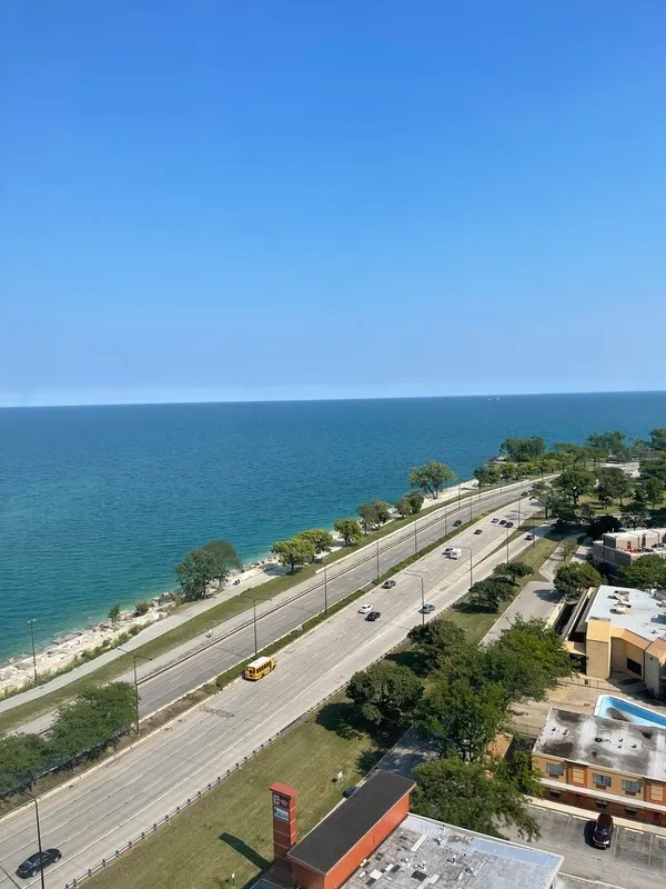 Spacious one bedroom apartment in Historic Kenwood/Hyde Park neighborhood. This unit has carpet throughout with fantastic closet space. This unit has spectacular south, west and east exposures of city and Lake Michigan. The Newport Condominium provides 24 hour doorman, security, on-site management/engineer, laundry facilities, free shuttle service to neighborhood grocery stores and transit stops. There is also a Health Club(additional $200 per year) which includes an indoor pool, jacuzzi, sauna and exercise room. There are a lot of shops and restaurants in Hyde park within walking distance as well. HEATED INDOOR VALET PARKING IS INCLUDED IN THE PRICE!!!