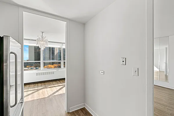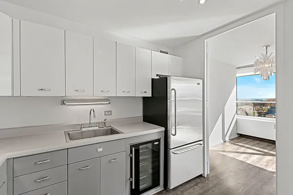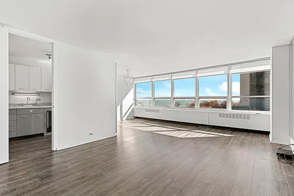 Watch beautiful morning sunrises including southern views of Lake Michigan from this spacious one bedroom condo with separate dining area in Historic Kenwood/Hyde Park neighborhood. There are 2 huge walk-in closets accessible from the hallway as well as an additional closet in the bed room. Brand new energy efficient windows, air conditioning, sound limiting flooring, 24 hour doorman, bike room, additional storage room, receiving room, on site laundry and free cable. There is also a well equipped health club with indoor pool, jacuzzi, sauna and locker room on the premises available for an additional fee. Downtown Chicago is a 10 minute drive and the lakefront is a short walk or bike ride away. Hyde Park shopping and dinning district is also easily accessible, especially with the free shuttle service provided by the building to transportation hubs and shopping area. Come check out your new home!