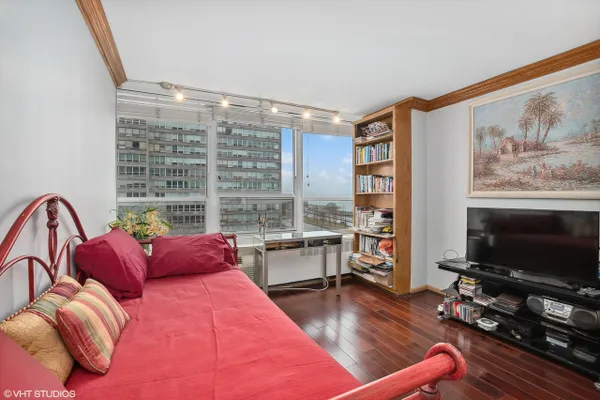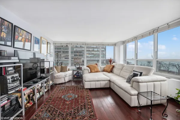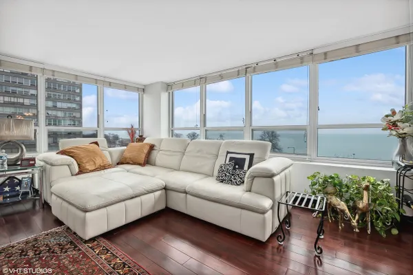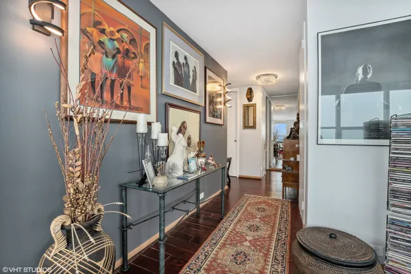 Corner unit 2 bed 2 bath condo with views of Lake Michigan, Navy Pier, and downtown Chicago! Unit has been nicely updated with hardwood cherry floors throughout, Updated gallery kitchen with ample cabinet space, bathrooms updated with newer lighting, vanities and glass shower doors. This unit does come with indoor heated parking as well. The view out of this unit is absolutely stunning out over the lake, lLake Shore Drive. This unit is an absolute must see!!! You'll enjoy Hyde Park living with a gym (membership required), pool, sauna, doorman, valet parking, and internet included! Nothing to do but move in and enjoy! Set your private showing today; This unit is highly sought after because of the tier that it is located in the building with the views it encompasses!