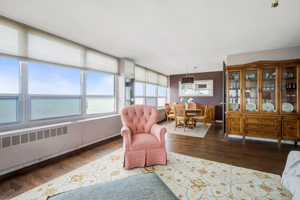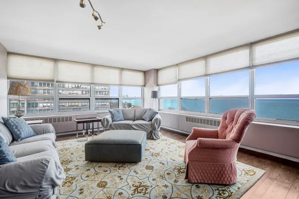 Enjoy breathtaking views of Lake Michigan and the Chicago skyline from your living and dining rooms. This exclusive Newport South Tower condominium features 2 BR, 2BA, a living room and dining room with hardwood flooring, ample storage, carpeted bedrooms, updated bathrooms and kitchen with ceramic and genuine stone tile flooring. The corner unit is spacious, and the location is ideal; walking distance to the Lakefront, 10-minute drive to the loop, close to the Metra and other public transportation, minutes away from shops and restaurants in downtown Hyde Park, a selection of great schools, including the University of Chicago. This full amenity building features heated indoor valet parking (monthly fee added to the monthly assessment invoice), package receiving service, bike room, free shuttle to public transportation and shopping, health club with indoor pool, jacuzzi, and sauna (there is a fee for health club membership), a rooftop deck, an on-site laundry room, and 24-hour friendly Doorman/Security. In addition to these amenities, your monthly assessment fee also includes heat, water, Internet and Cable/TV. You only pay the electric bill! Please call me today to schedule a showing for your pre-approved or cash buyer!