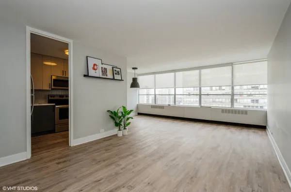 North facing with beautiful lake views from this spacious one bed, one bath condo in The Newport. Newly renovated condo with an updated kitchen, new appliances, custom window shades, manufactured flooring throughout, and ample storage space. Plumbing and electrical have also been updated inside of the unit. Bathroom features new tile, vanity, and glass shower door. Monthly assessments include heat, water, sewer, trash, cable TV and internet. Building amenities include 24-hour doorperson, laundry room, receiving room, storage locker, bike storage, and on-site manager/engineer. Additional fee for use of indoor pool and exercise facilities. Excellent Hyde Park location near University of Chicago, the 53rd street shops and restaurants, and the lakefront. Rental parking could be available from other owners in the building for an additional fee.