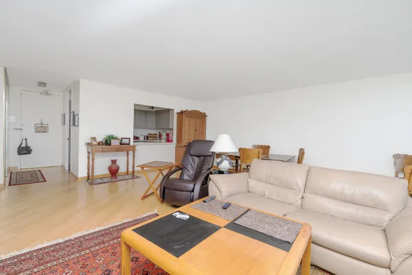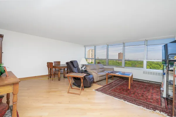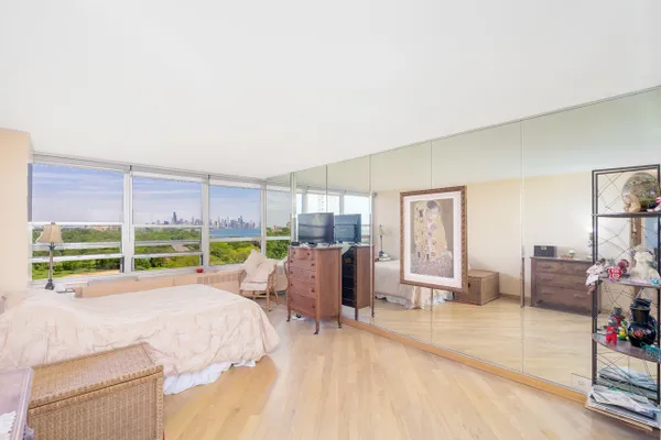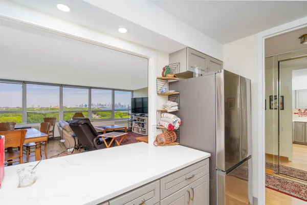 Incomparable, unobstructed views of the Chicago Skyline and Lake Michigan! The living is easy in this impressive, generously proportioned lakefront condo in Historic Hyde Park/Kenwood. This very spacious two bedrooms, two bath condo has beautiful newer hardwood floor throughout with newer windows. The updated kitchen boasts an abundance of gray custom cabinets, white quartz counters, pantry with pull-outs and stainless steel appliances and also has an opening that seamlessly flows into the dining area offering stunning views. The master suite is complete with a walk-in closet and an additional closet with a private bathroom. Custom window treatments & updated electric. Amenities include an indoor pool, fitness center, bike room, secured door staff, library, large laundry facility, storage, Go Grocer store and more. Perfect condo for a family and only 10 minutes from downtown Chicago and walking distance to Hyde Park's beautiful lakefront, cafes, restaurants, shopping, Metra station, museums and a selection of great schools. ONE INDOOR HEATED VALET PARKING SPACE IS INCLUDED IN THE PRICE. All utilities except electric covered in HOA.