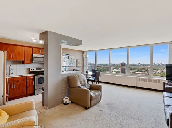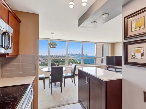 Beautifully updated 1 bedroom unit, with a gorgeous kitchen. Come to see the unit and be blown away by the view that is one of the best. North facing views of lake and city make for the best artwork cause it always changes with the weather and time of the year. Within a short walking distance to all that Hyde Park has to offer and the shopping area of 47th and Lake Park. Easy access to Metra and CTA. The building offers a free shuttle, to get around Hyde Park, for it's residents. Building amenities include 24/7 door staff, onsite management maintenance and cleaning staff, indoor pool, fitness room, rooftop deck bike and storage rooms, the list is long. rental parking maybe available.