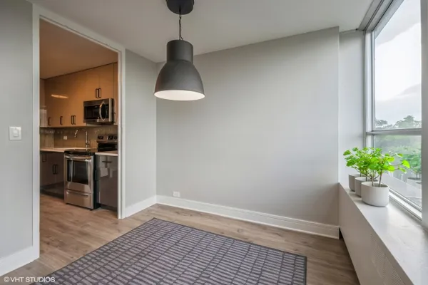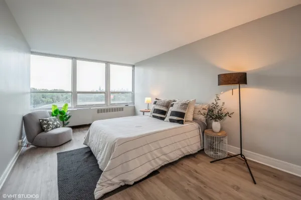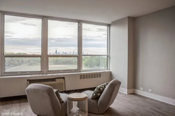 Stunning city and lake views from this large Hyde Park one bed, one bath condo in The Newport. Newly renovated condo with an updated modern kitchen, new stainless steel appliances, wood flooring throughout, and ample storage space. Monthly assessment includes heat, water, cable TV and internet and storage locker. Building amenities include 24-hour doorperson, laundry room, package receiving room, bike storage, and on-site manager/engineer. Indoor pool and exercise facilities available for an additional fee. Excellent Hyde Park location near University of Chicago, Whole Foods, Trader Joe's, Sweetgreen, Lululemon and other 53rd street shops and restaurants, and the lakefront. Indoor valet parking available for rent from other owners in the building.