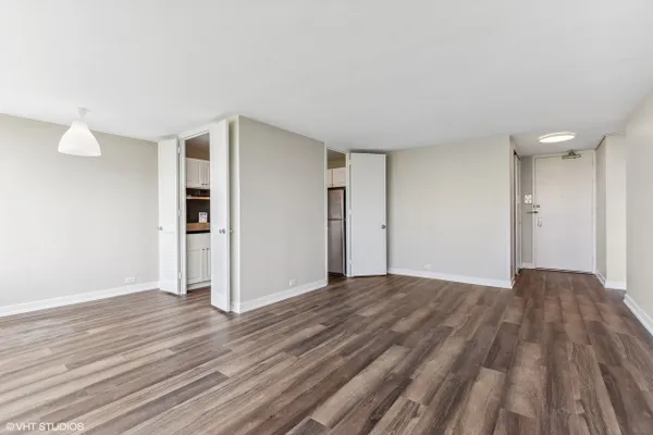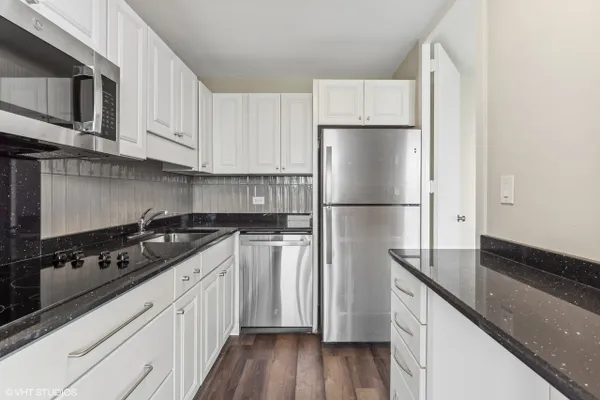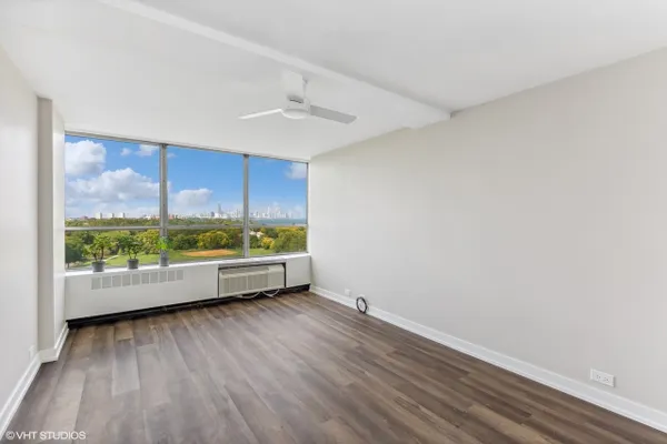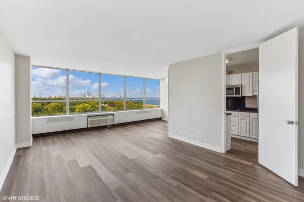 Stunning city and lake views from this large Hyde Park one bed, one bath condo in The Newport. Kitchen features new stainless steel appliances, tile backsplash, granite countertops and plenty of cabinet space. Bathroom has been completely renovated with new tile, vanity and walk in shower. Monthly assessments include heat, water, cable TV and internet and an additional storage locker. Building amenities include 24-hour doorperson, laundry room, package receiving room, bike storage, and on-site manager/engineer. Indoor pool and exercise facilities available for an additional fee. Excellent Hyde Park location near University of Chicago, Whole Foods, Trader Joe's, Sweetgreen, Lululemon and other 53rd street shops and restaurants, and the lakefront. Parking available for rent from other owners in the building.