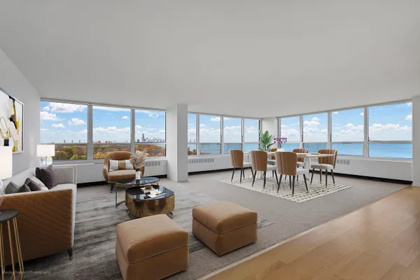 TWO UNITS COMBINED INTO ONE EXCEPTIONAL SPACE! Enjoy breathtaking, million-dollar views of the Chicago skyline and Lake Michigan from every window~ Unit 1001 was completely renovated in 2016, while Unit 1002 was recently updated-both freshly painted and featuring all-new windows throughout~ Two heated valet parking spaces are included for your convenience~ The versatile floor plan is perfect for related living, an au pair, or nanny suite~ Ideally located just 10 minutes from downtown Chicago and within walking distance to Hyde Park's scenic lakefront, charming cafes, restaurants, shops, museums, public transportation, and highly regarded schools, including the University of Chicago~ This full-amenity building offers 24-hour door staff and security, a complimentary shuttle service, laundry facility, bike room, storage locker, and on-site management and maintenance. Residents also enjoy access to the on-site health club, featuring a pool, jacuzzi, sauna, and fitness center, available with membership~